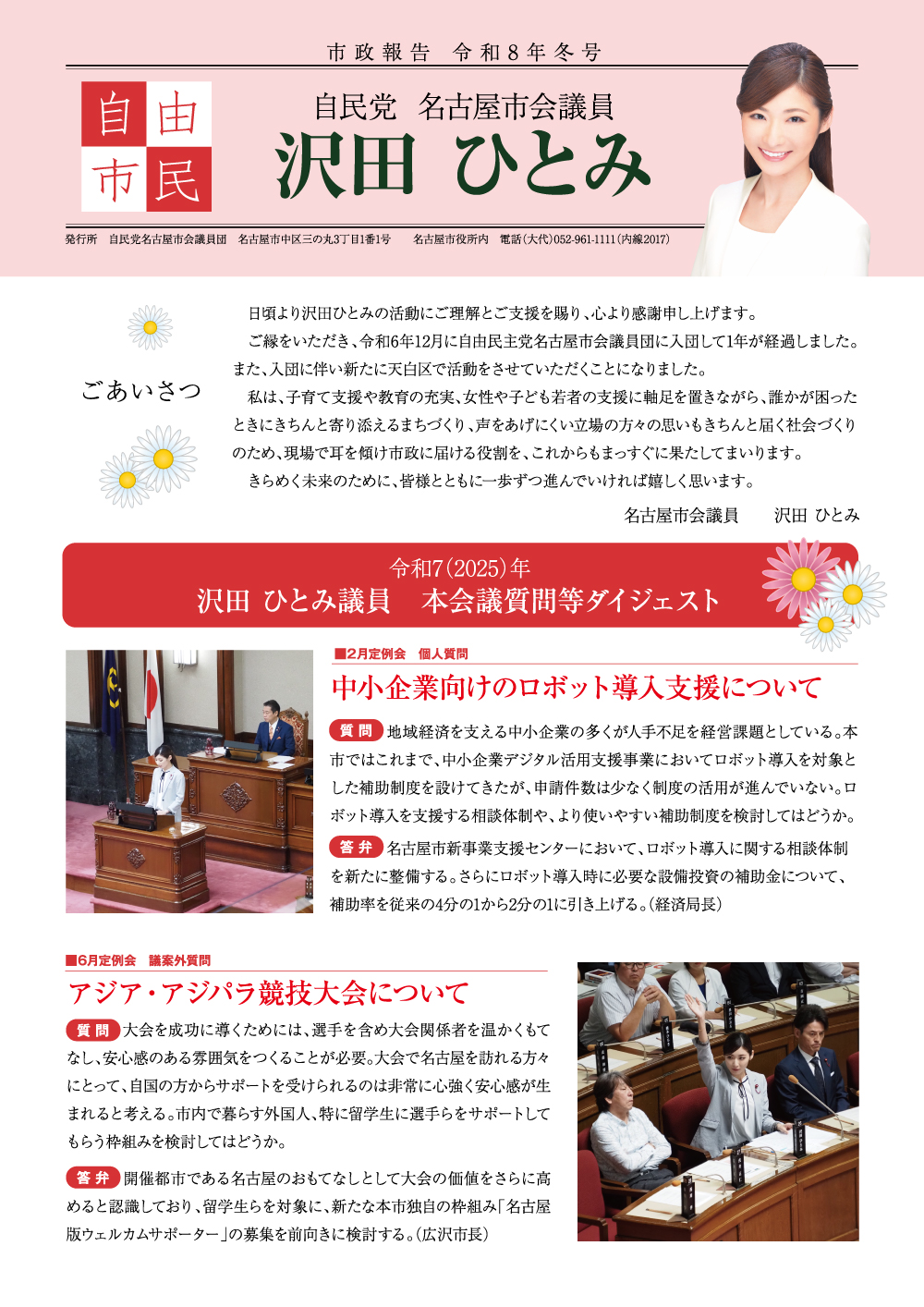 このたび、ご縁をいただき、新たに天白区で活動を始めさせていただくことになりました。皆さまのお声をお伺いしながら、名古屋のために力を尽くしてまいります。何卒よろしくお願いいたします。